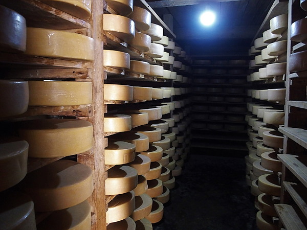 Avec le patron qui pèse notre morceau de fromage. Il était temps car nous n'en avions plus. Avec plus d'un kilo, nous en aurons assez jusqu'à la prochaine fromagerie.